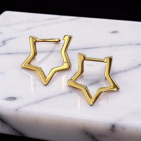 Elevate your style with our star-shaped sterling silver hoop earrings. Crafted with precision, these exquisite earrings add a celestial touch to any outfit. The high-quality sterling silver ensures durability and shine, while the unique star design sets you apart. Comfortable and versatile, these earrings are a perfect accessory for any occasion.